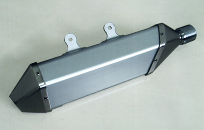 487、永康市杜威消声器厂D9-1消声器(配件,外观设计) ▲产品创新要点: (1)消声器前盖、后盖独特的造型与多边形铝管的完美结合,外形更美观; (2)内部结构分为直排式和静音式两种,适应不同的需求; (3)适用范围:150CC—400CC各车型发动机。 ▲产品维权要点: (1)前盖、后盖及铝管的外形尺寸; (2)几何尺寸±10%。 ▲维权时间:外观设计壹年(2009年4月13日至2010年4月12日) 此产品已通过本协会维权,其它企业不得仿冒侵权,如有发现严厉打击。
